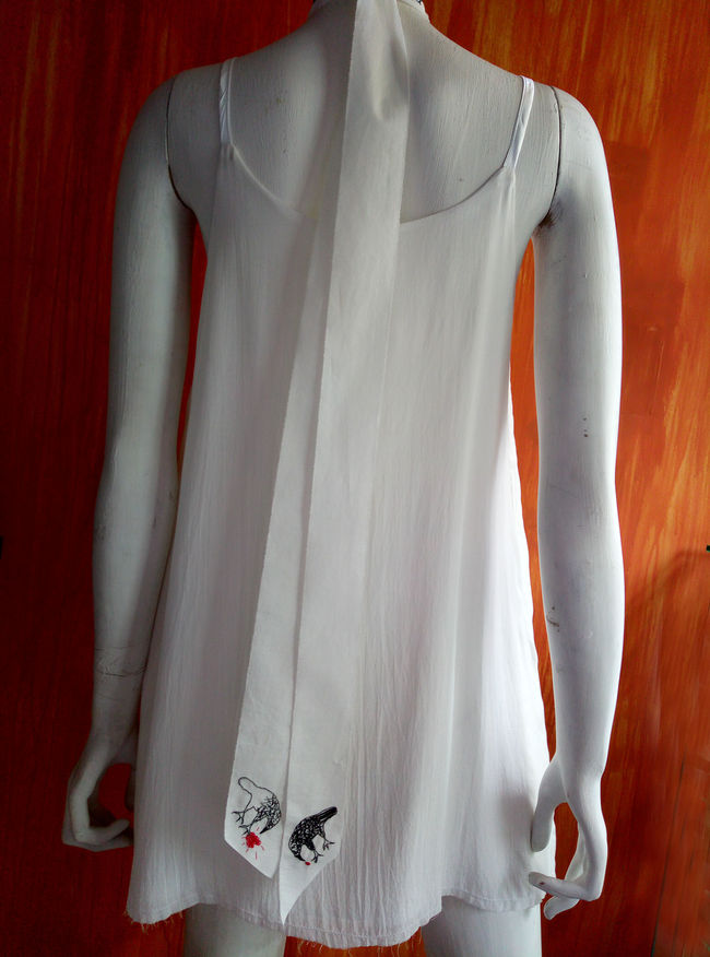 Entonces Coser, bordar, remendar en mi trabajo significa, armar de nuevo mi mundo, poblarlo de nuevos contenidos, de nuevos sentidos, de nuevas posibilidades de existencia. Coser es suturar para sanar y curar el espíritu. Es retirarme en silencio para recoger cuidadosamente los pedazos y recomponerlos en un acto de resistencia, un acto de cirugía creativa, tejiéndome y poniendo en evidencia la propia capacidad de salvarme a mí misma siendo mi propia cirujana, el bisturí como pincel para inscribir la nueva gramática del cuerpo y del vestido, en un viaje a lo sublime.